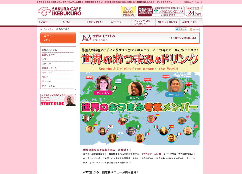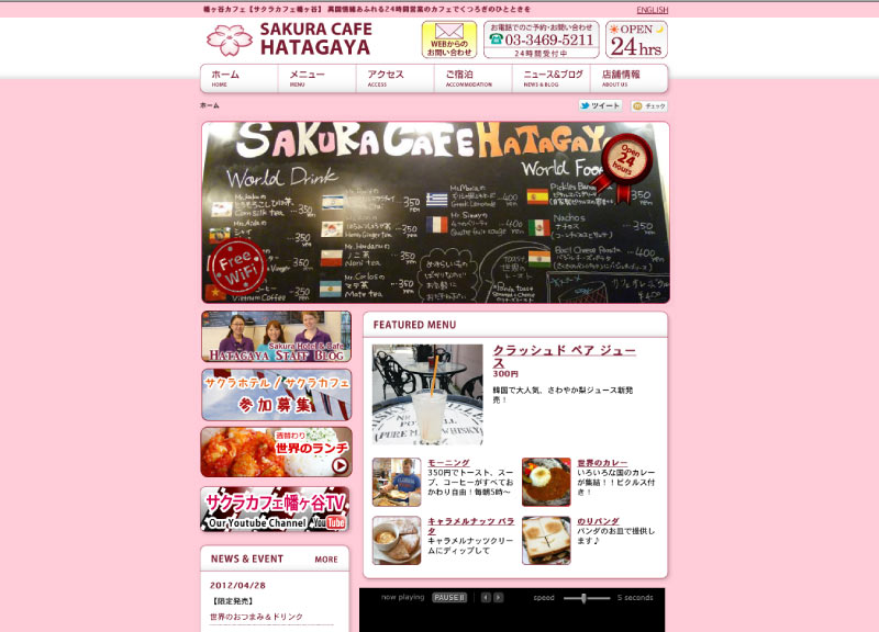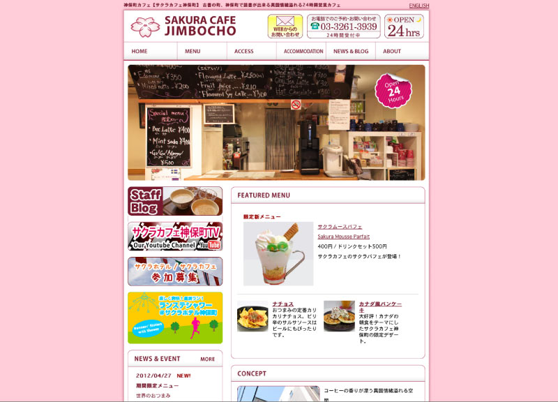 サクラホテルにあるカフェ、サクラカフェ3店舗分の修正・更新を担当。 担当者離職・不在時の短い間の担当でしたが、担当していた時期にデザイン等したものは、 まだかなり残っています。
