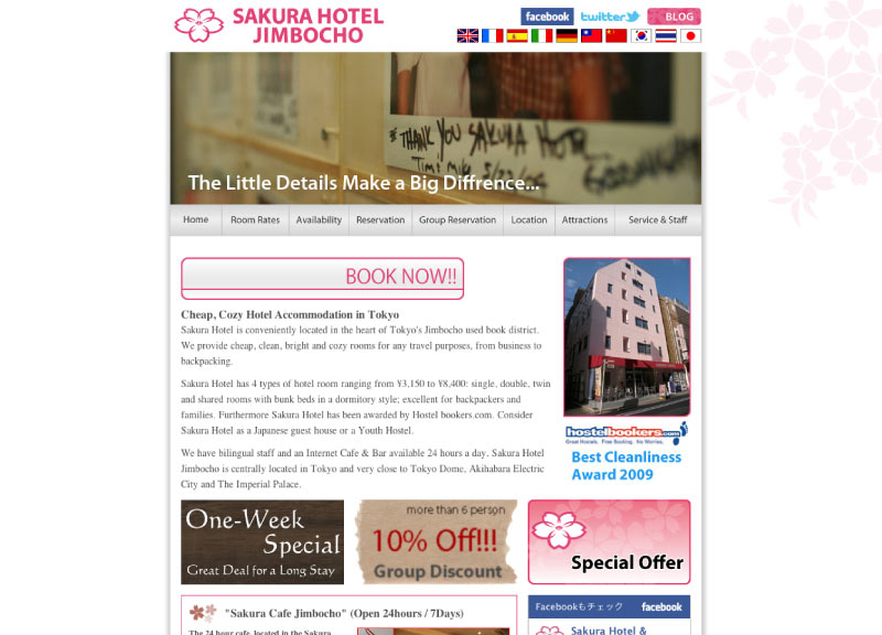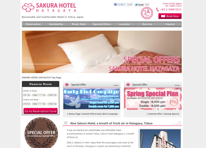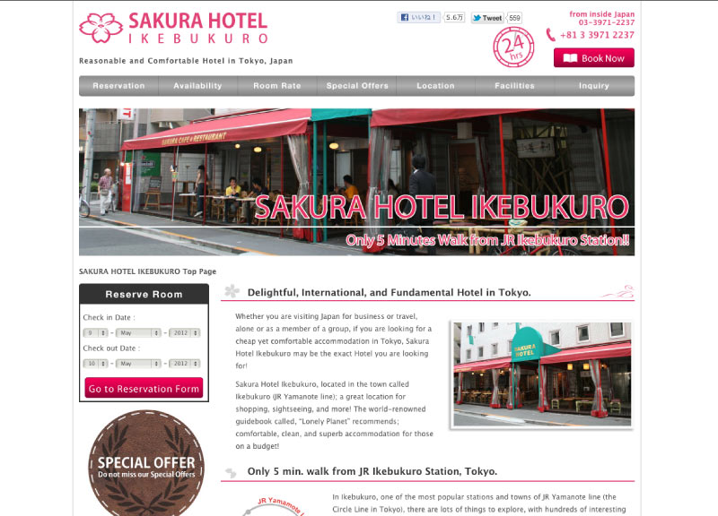 東京に4店舗を構えるサクラホテルの各館のサイトのマネージメント