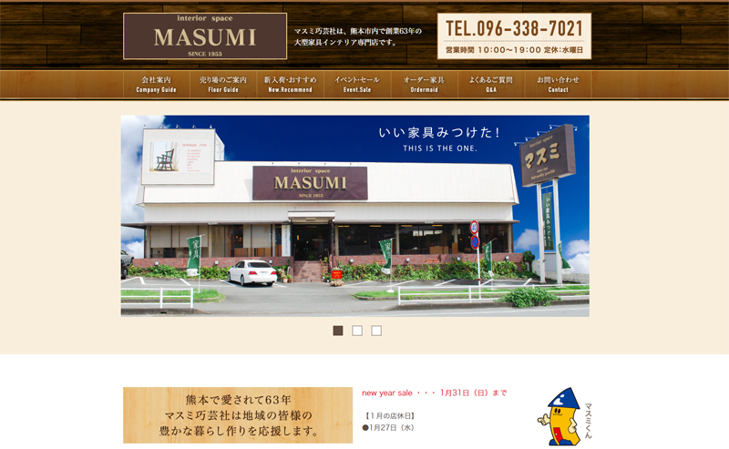 株式会社 マスミ巧芸社様のホームページ 熊本の制作会社在籍時に制作 ページのコーディング、レスポンシブ化、WordPressの組み込み等を担当