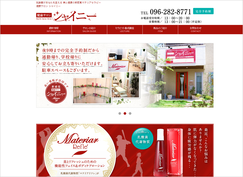 健康サロン シャイニー様のホームページ 熊本の制作会社在籍時に制作 ページのコーディング、レスポンシブ化、WordPressの組み込み等を担当