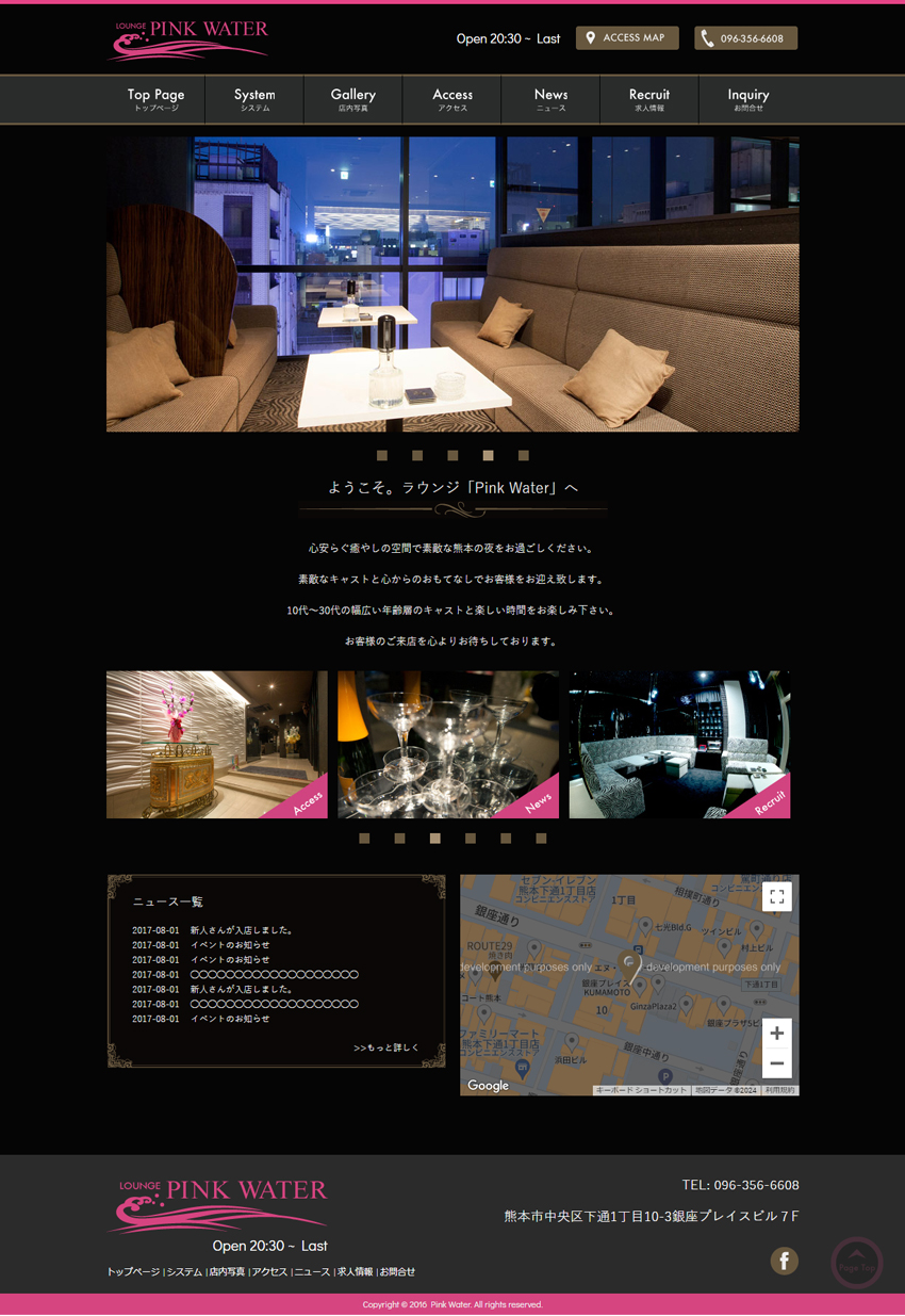 熊本のラウンジ、ピンクウォーター様のサイト。